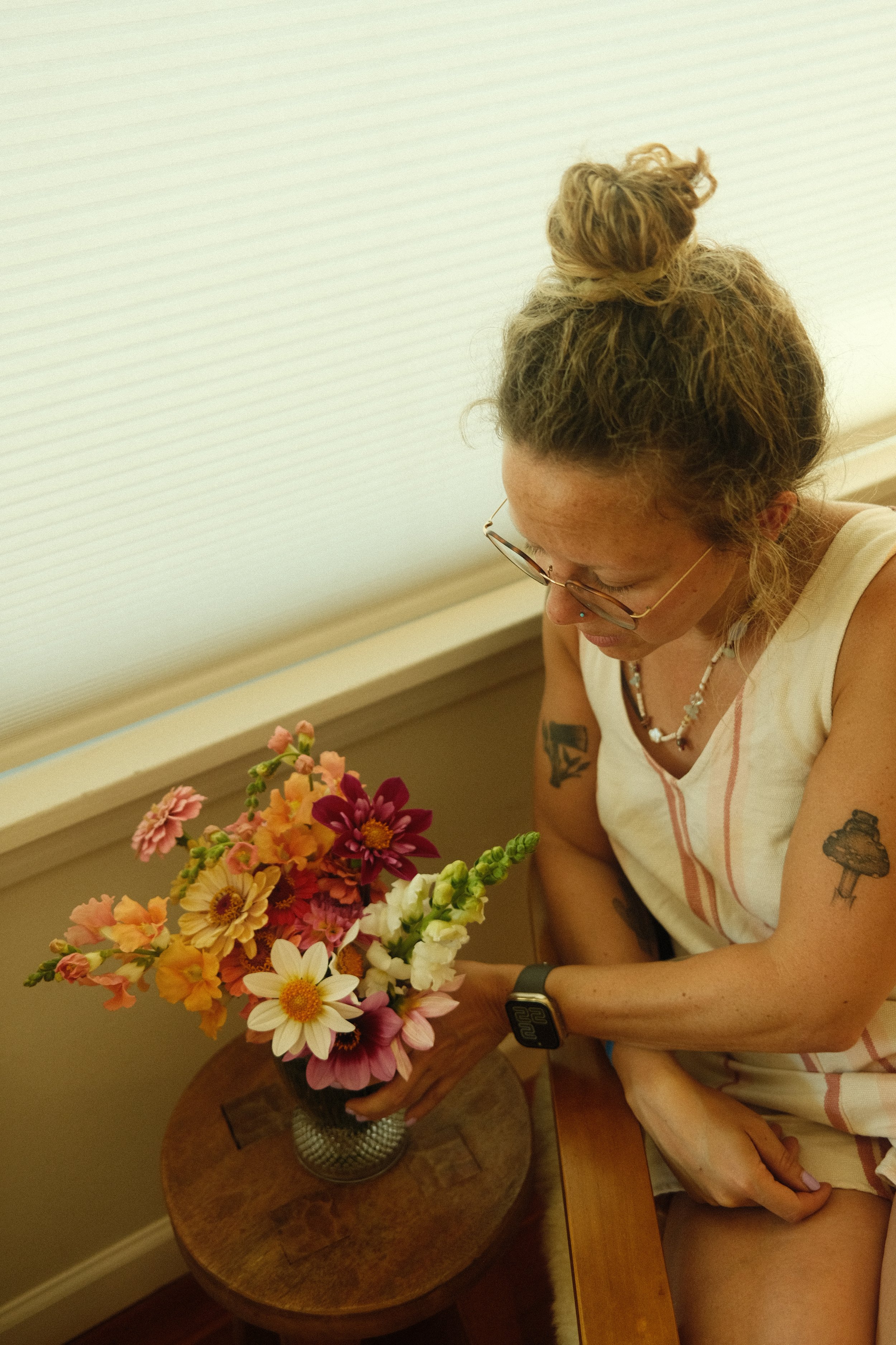 I started growing flowers when I moved into my house in 2021, and it was a quick obsession. I got divorced in 2023 and, in early 2024, began growing flowers with my new partner, Tim. Together, we built 5 new garden beds in the backyard for a cut flower garden. We had to add spigots in the back for water, and we also built a shed and a greenhouse for seeds.